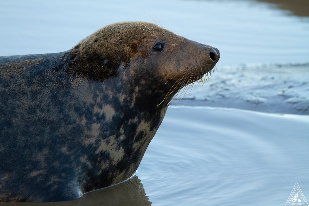 The Grey Seal (Halichoerus grypus) is the larger of the two UK seal species. Their scientific name is Halichoerus grypus – which translates to hook-nosed sea pig! It is a large seal of the family Phocidae, which are commonly referred to as “true seals” or “earless seals” and it is the only species classified in the genus Halichoerus.