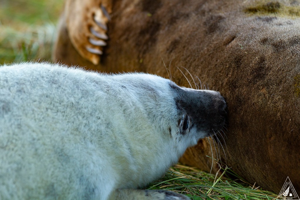 The pups undergo a post-weaning fast and can spend up to 2 weeks alone on the beach before they build up the courage to take the plunge into the sea and learn to swim and fish for themselves! By this time, they will have trebled their body weight, shed the pup fur, and grown dense waterproof adult fur. The weight gain consists mainly of a layer of blubber below their skin, which is vital insulation when they do go to sea.