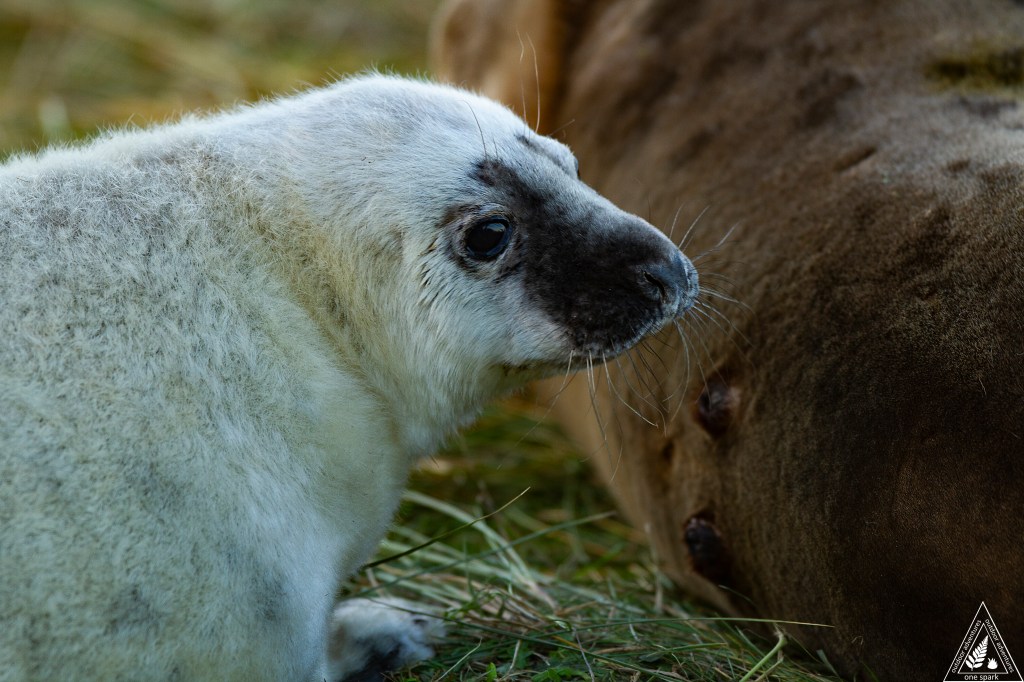 Female Grey Seals are dedicated mothers, spending several weeks feeding their pups and losing up to 65kg in the process. The pups drink two and a half litres of milk every day gaining about 2kg. in weight each day. The milk is so rich, pups can grow by as much as 30kg in two weeks. The fat-rich milk can consist of up to 60% fat. This noisy spectacle is great to see, and the pups sometimes sound like human babies crying. After a month or so, the females leave their pups and head back out to sea where they feed and mate again.