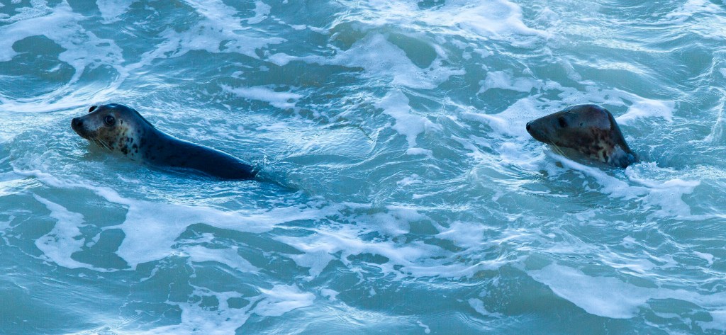 Moving on to the seals. As we walked from the lighthouse car park towards the headland, we passed a young couple with a child who asked us if we’d seen the two seals in the bay. Excitedly we saw the two they mentioned, although a bit distant, before continuing to the bay guarded by a jaw of cliff known as the ‘drinking dinosaur’.