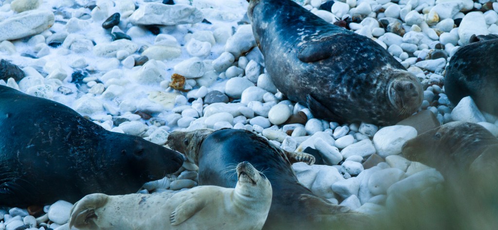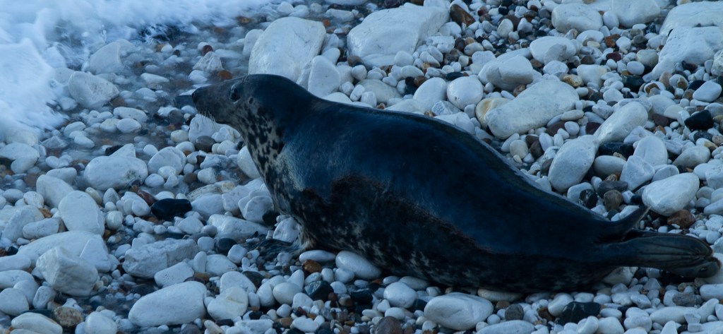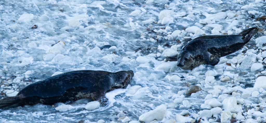 The reason for that is obvious by its shape. I can’t describe how amazing it was to then see that on the beach there were hundreds of seals basking on the sand, pebbles, and rocks, as well as playing in the water. The sun was low in the sky so the light wasn’t that brilliant, but I hope you find the following pictures interesting. Just click on them to view the full-size image.